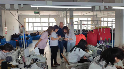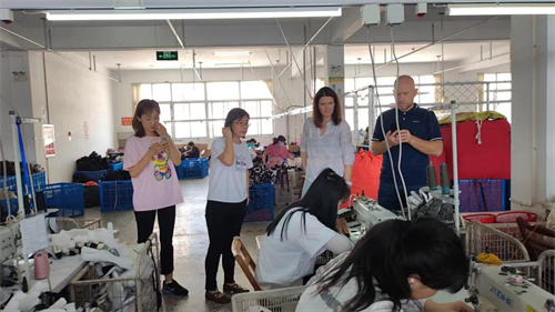 國外客人在工廠視察訂單生產(chǎn)情況?